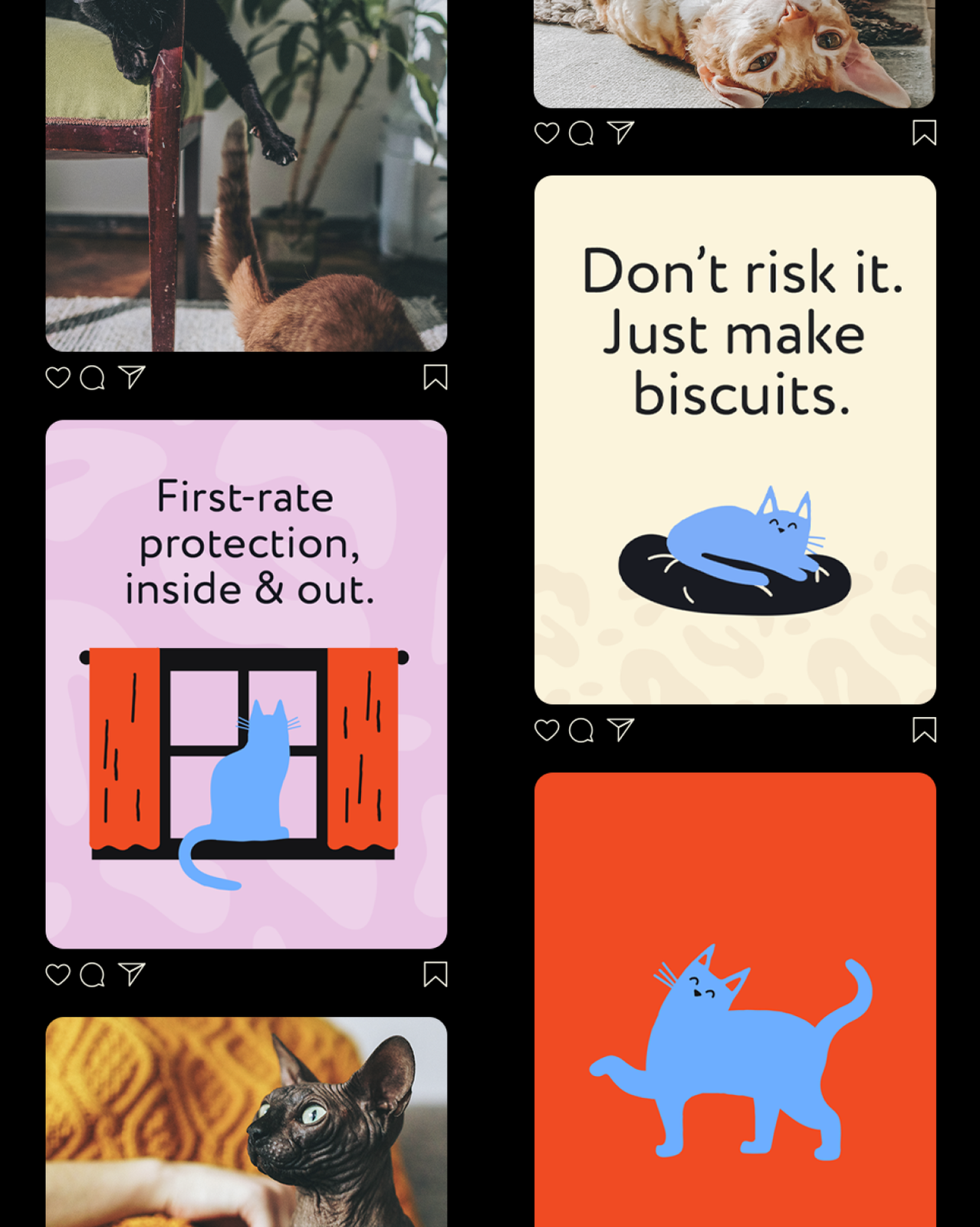 Felix entered a crowded pet insurance market with one distinct advantage: They’re the only provider that caters exclusively to cats. They needed a brand as unique as their offering. We started by zeroing in on the quirks and eccentricities of felines, then established a visual and verbal identity aimed directly at those who resonate most: cat parents. By weaving feline personality into every aspect of the brand—from tone to logo to custom illustrations—Felix proves that they understand cats better than any human ever could. The branding came to life across all owned and paid channels, earning them the trust of cat parents everywhere.